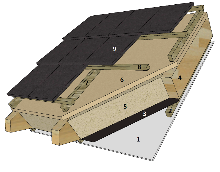 5-Lattage technique 50mm2x12.5m1-Isolamento em fibra de madeira 60 mm